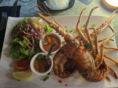 Quand nous partons en vacances, nous aimons découvrir les saveurs locales. En Guadeloupe nous n'avons pas été déçus. La cuisine est variée, métissée et riche en épices. Il y a les incontournables tels que les accras, le poulet colombo ou boucané, le boudin créole, les bokits (sandwich frit), les poisons grillés (tels que le marlin ou le vivaneau) ou en court bouillon, la langouste etc...le tout est accompagné de légumes locaux : igname, patate douce, manioc, banane plantin...